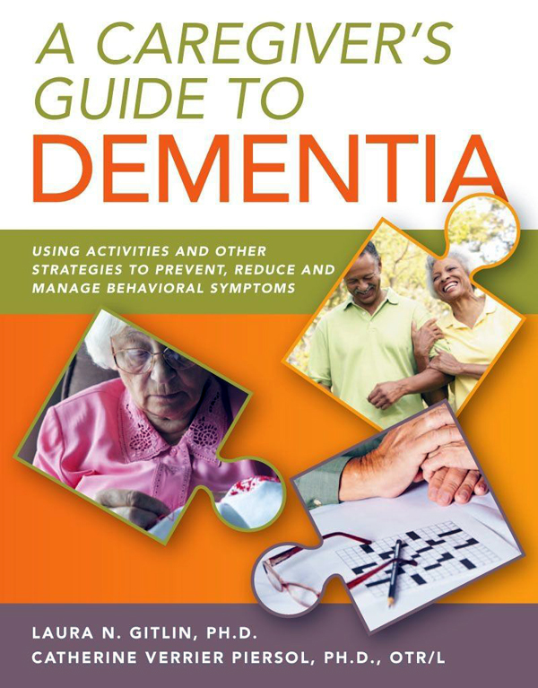 These are some of the common challenges encountered by individuals and families who are caring for someone with dementia. Laura N. Gitlin, Ph.D. and Catherine Verrier Piersol, Ph.D., OTR/L wanted to help. They had firsthand experience in clinical settings, discovering what works and doesn’t work with those suffering with dementia. They offer A Caregiver’s Guide to Dementia: Using Activities and Other Strategies to Prevent, Reduce and Manage Behavioral Symptoms.